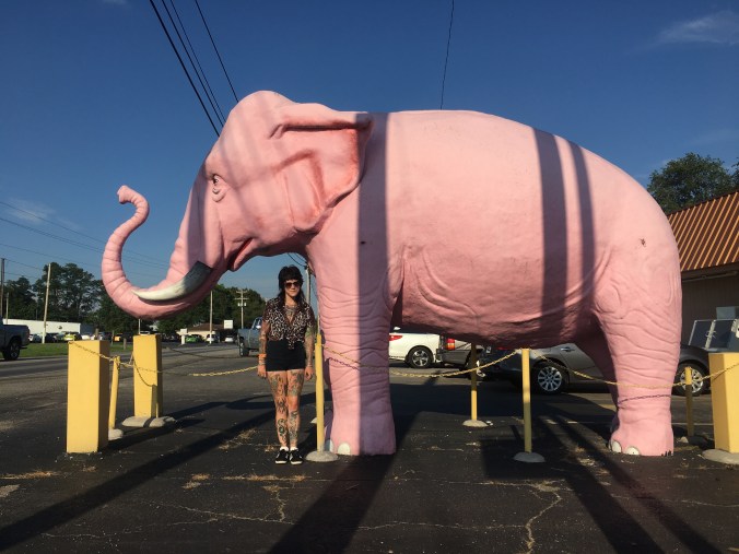 This isn’t even near a completely satisfying explaination for roadside elephants are all over the United States. It’s also not near a complete list. When discussing this mystery with some friends of mine, I found my friend remembered not one but two in her hometown of Springfield Illinois, one of which has now been painted green, and one that’s holding a martini glass. Do you have a Pinky in your hometown? Know anything about it’s history? Pop in the comments or email me!