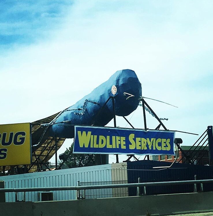 The World’s Largest Bug, who is a termite evidently named Nibbles Woodaway, sitting on top of Big Blue Bug Solutions (formerly New England Pest Control) in Providence, Rhode Island. Also seen in the classic masterpiece of cinema Dumb and Dumber